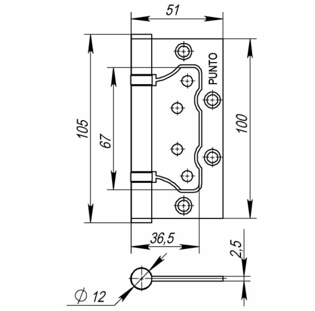 Петля Punto (Пунто) универсальная без врезки IN4200W PN (200-2B 100x2,5) матовый никель информация: