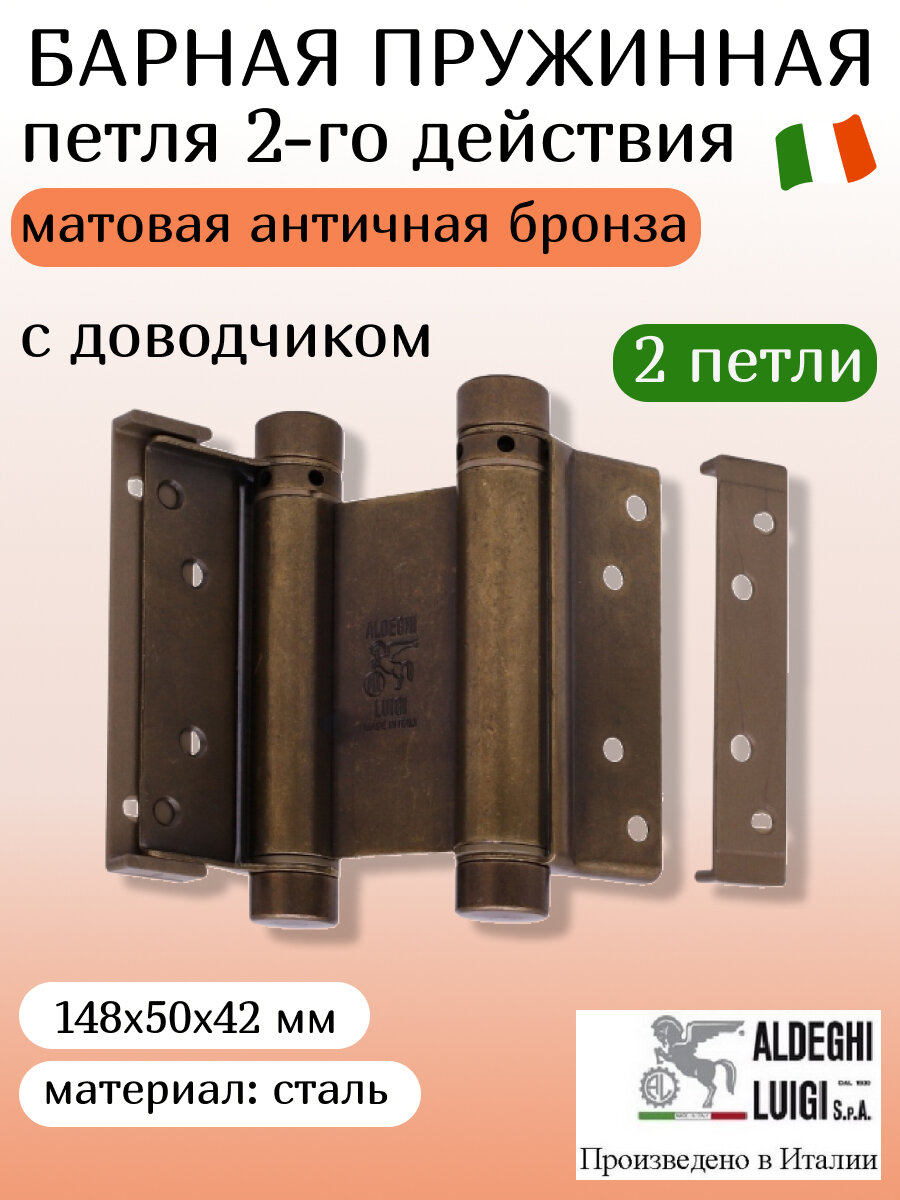Барная пружинная петля двойного действия ALDEGHI LUIGI S.p.A. 148х50х42 мм, цвет: бронза, к-т: 2 шт + ключ с декоративными заглушками 4 105 ₽