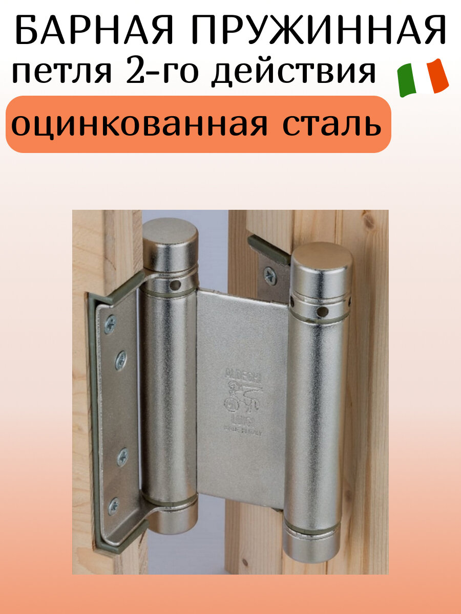 Барная пружинная петля двойного действия ALDEGHI LUIGI SpA 148х50х42 мм, оцинкованная сталь, комплект: 2 шт + ключ с декоративными заглушками, 101AZ150B 3 996 ₽