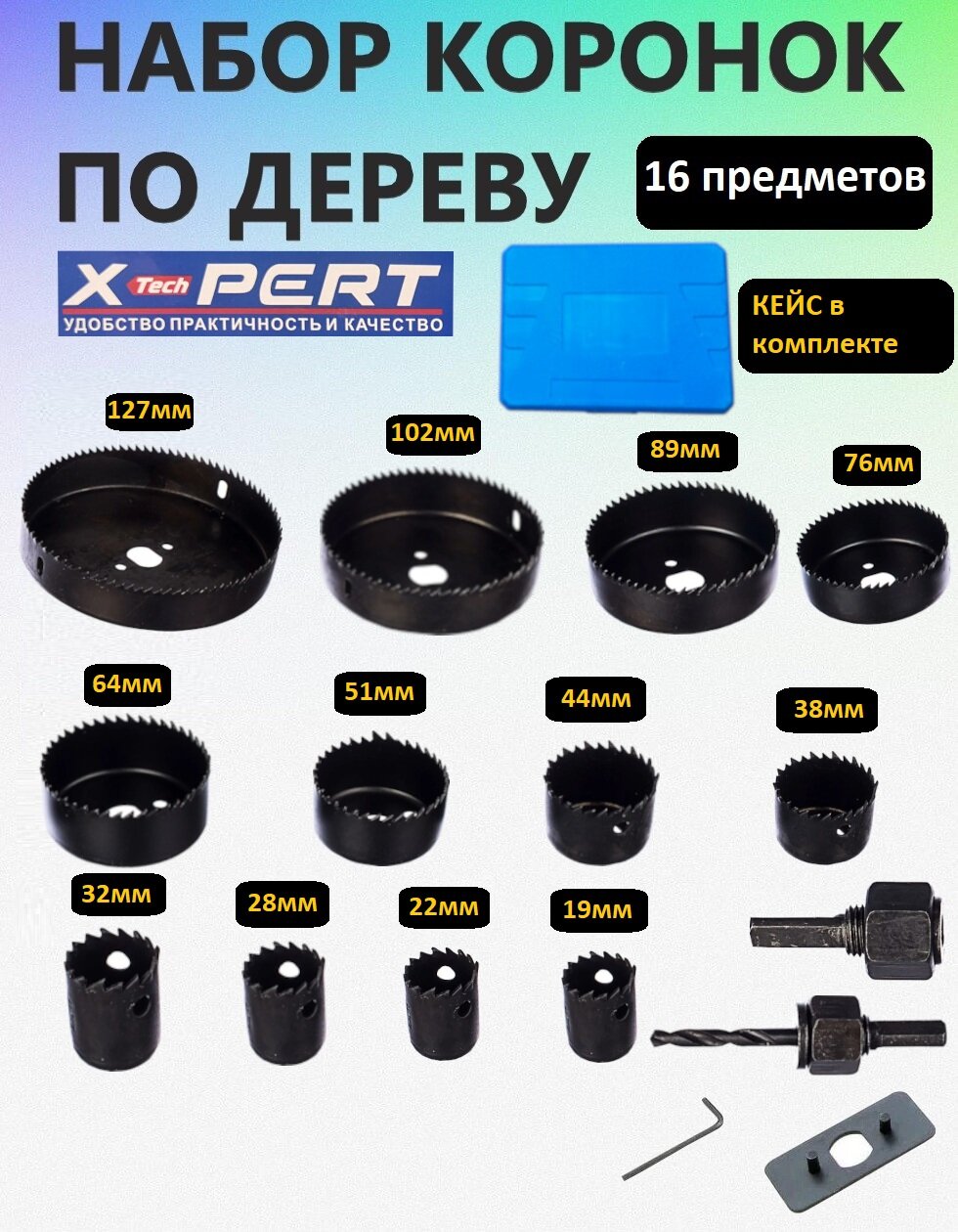 Пилы кольцевые по дереву набор 16 предметов. В кейсе "X-PERT" информация: