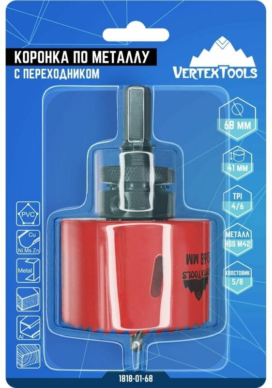 Отзывы на Коронка по металлу с переходником 68 мм vertextools 1818-01-68