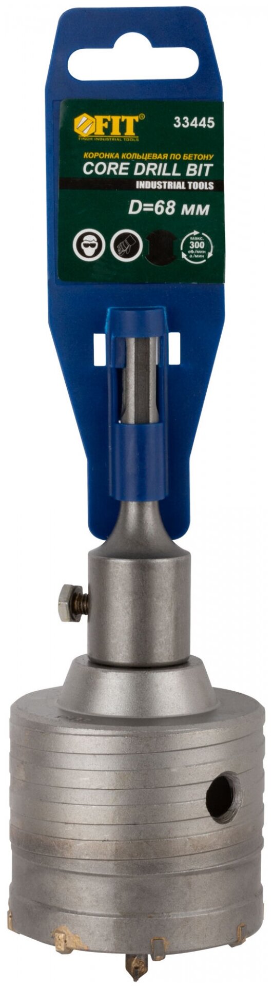 Коронка кольцевая по бетону 68мм, хвостовик 100мм в сборе (упаковка-двойной блистер) код 33445 FIT ( 1шт. )
