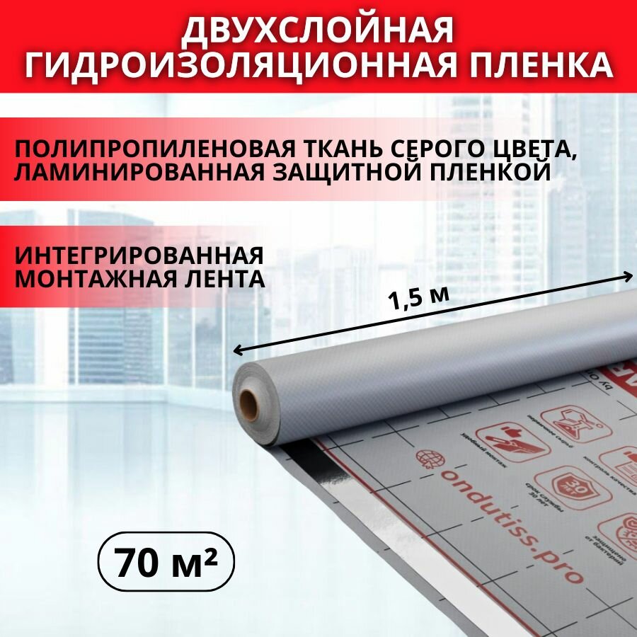 10 цен на Гидроизоляция ONDUTISS SMART D 70м2, двухслойная гидроизоляционная пленка с интегрированной лентой Ондутис Смарт D