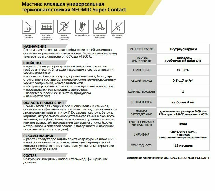 Мастика-клей термовлагостойкий NEOMID SUPER CONTACT, универсальная 4кг информация: