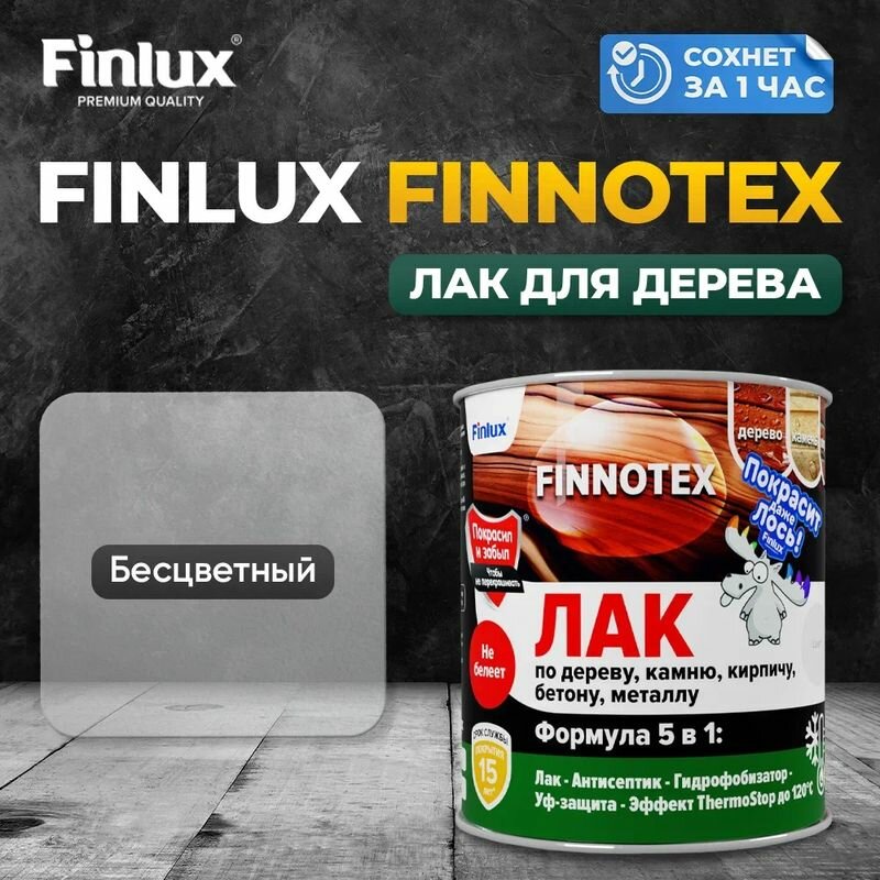 10 цен на Лак акриловый Finlux F-973 FINNOTEX для дерева, полуглянцевый, бесцветный, 0.8 кг