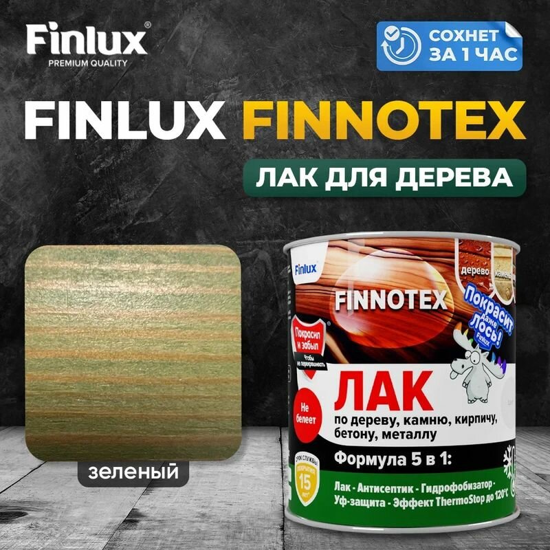 Отзывы на Лак акриловый Finlux F-973 FINNOTEX для дерева, полуглянцевый, цвет зеленый, 0.8 кг