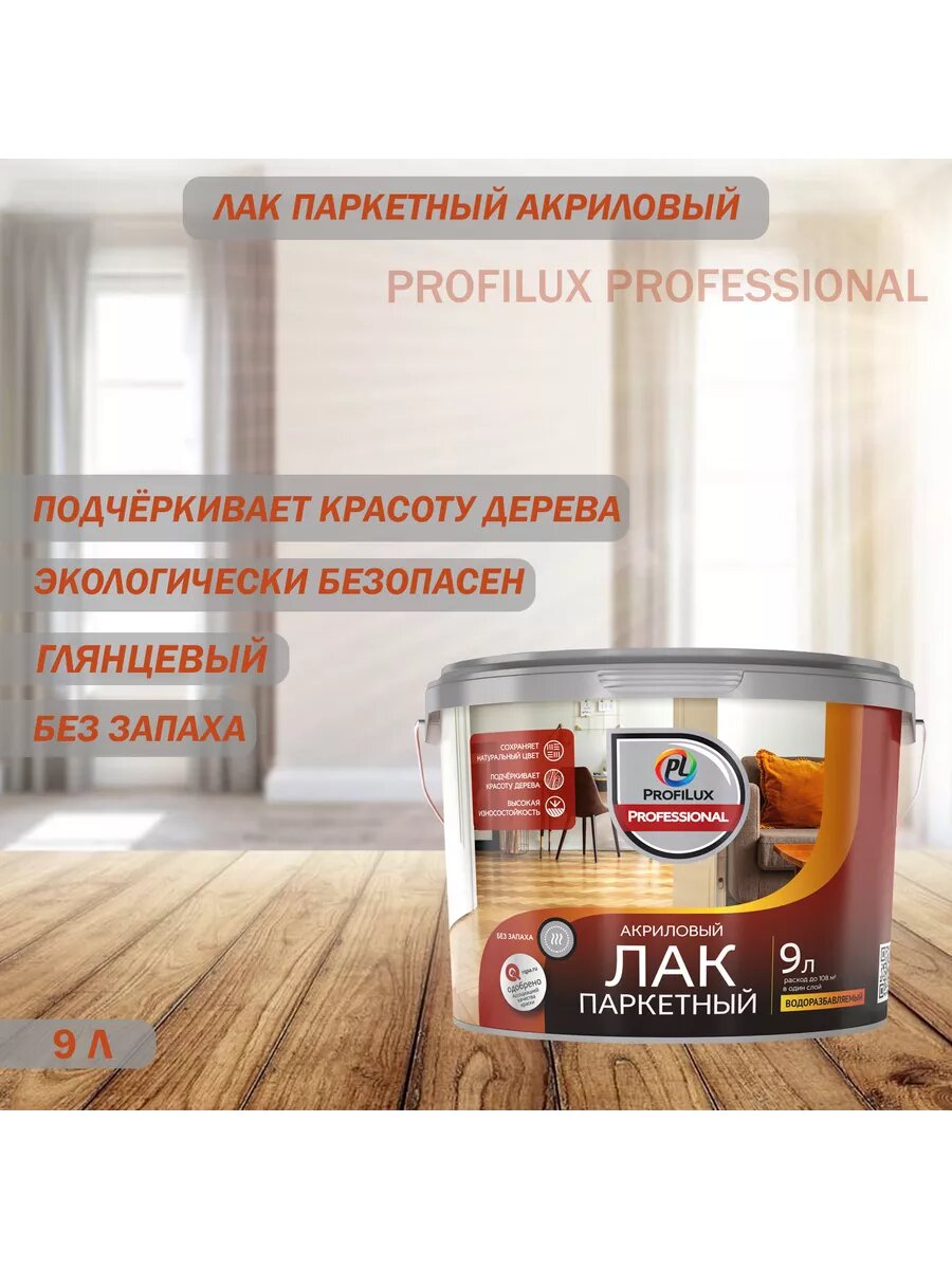 Лак паркетный акриловый Profilux Professional глянцевый 9 л. информация: