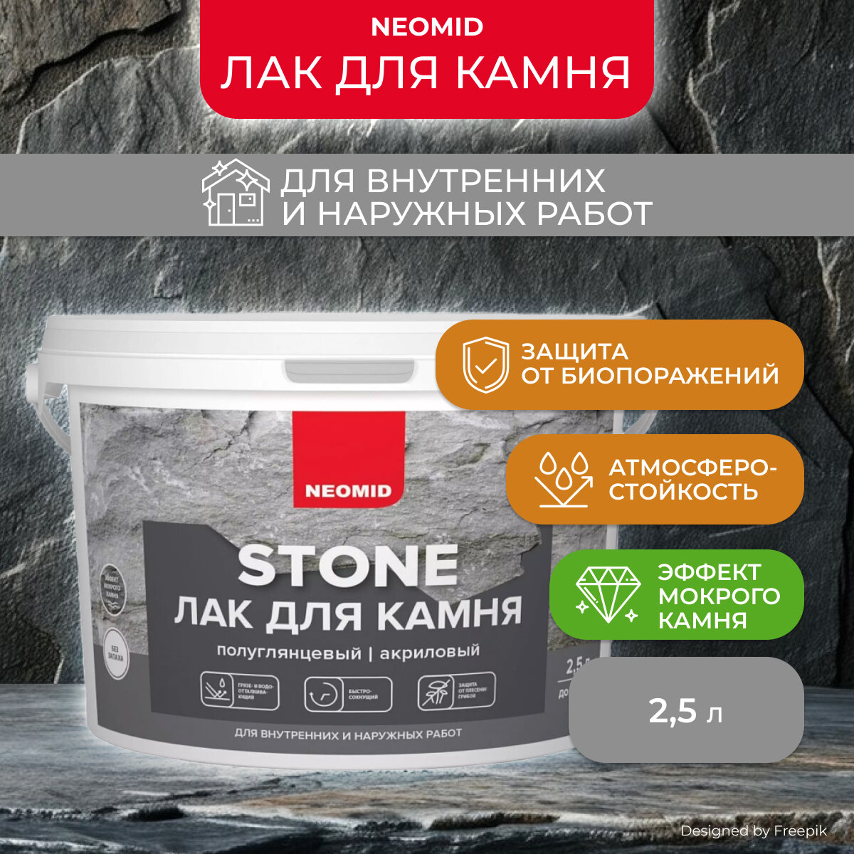 10 цен на Лак для камня и кирпича Neomid, акриловый, полуглянцевый, 2,5 л
