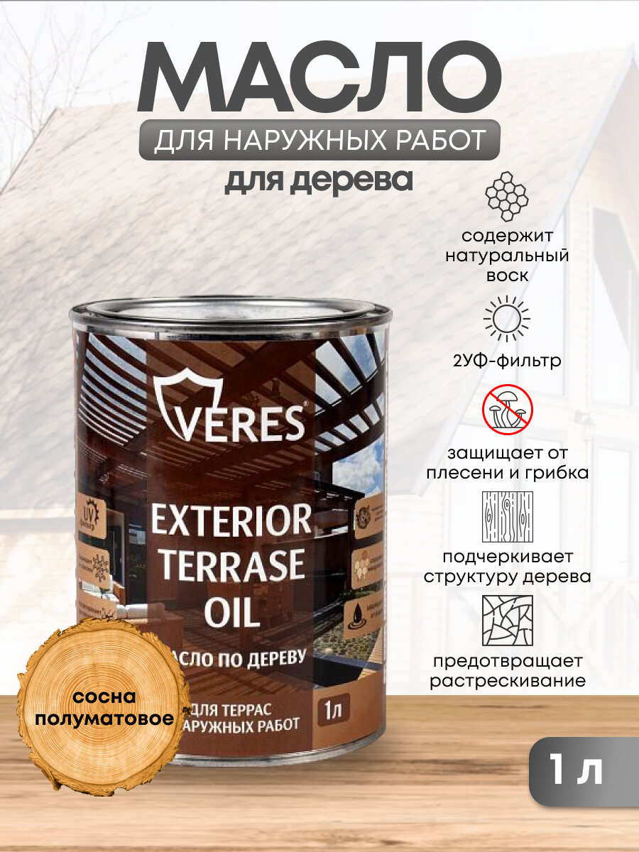 Масло для дерева "Veres" Exterior Terrase Oil, 1 литр, цвет: сосна информация: