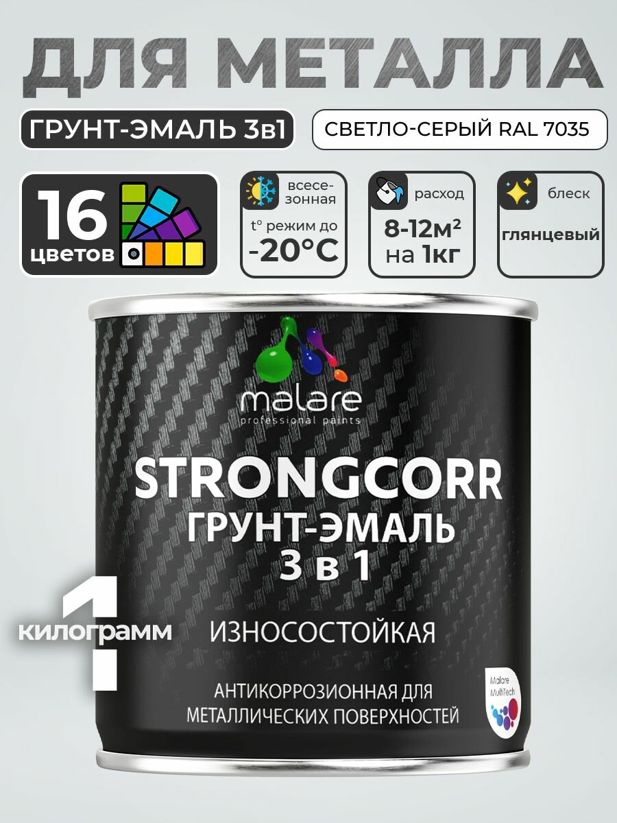 10 цен на Грунт-Эмаль Malare 3 в 1 для металлических поверхностей, краска для металла, износостойкая, глянцевая, RAL 7035, светло-серый, 1 кг.