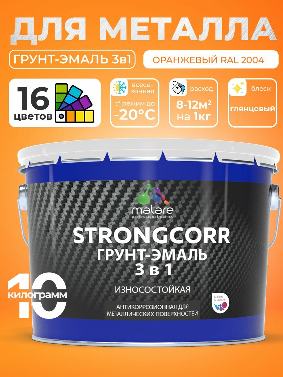 10 цен на Грунт-Эмаль Malare 3 в 1 для металлических поверхностей, краска для металла, износостойкая, глянцевая, RAL 2004, оранжевый, 10 кг.