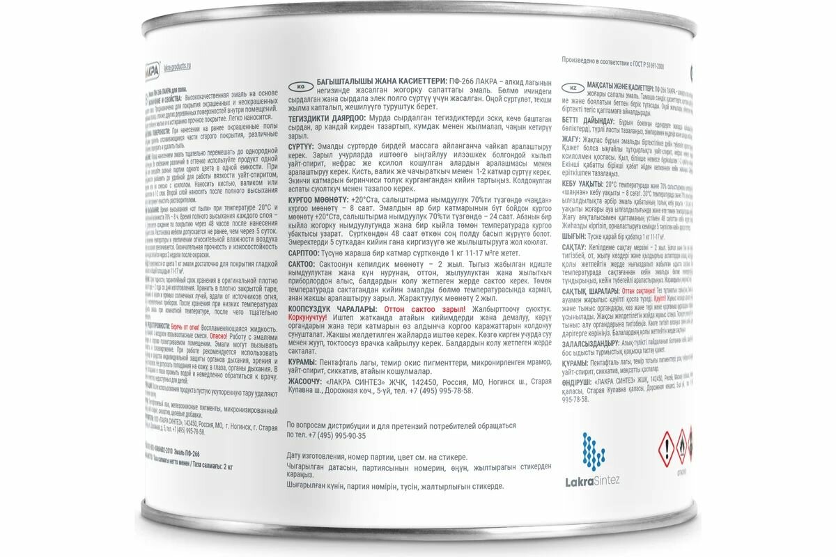 | Дополнительная информация | Эмаль алкидная (А) Лакра ПФ-266, красно-коричневый, 2 кг |