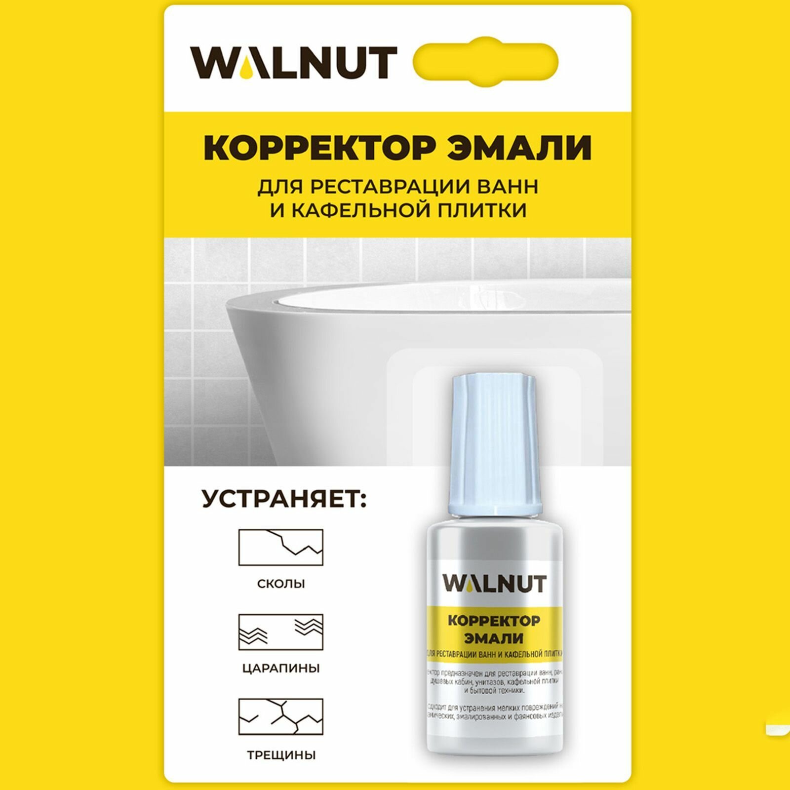 Отзывы на Корректор WALNUT, для реставрации эмали, для керамики, матовый, белый