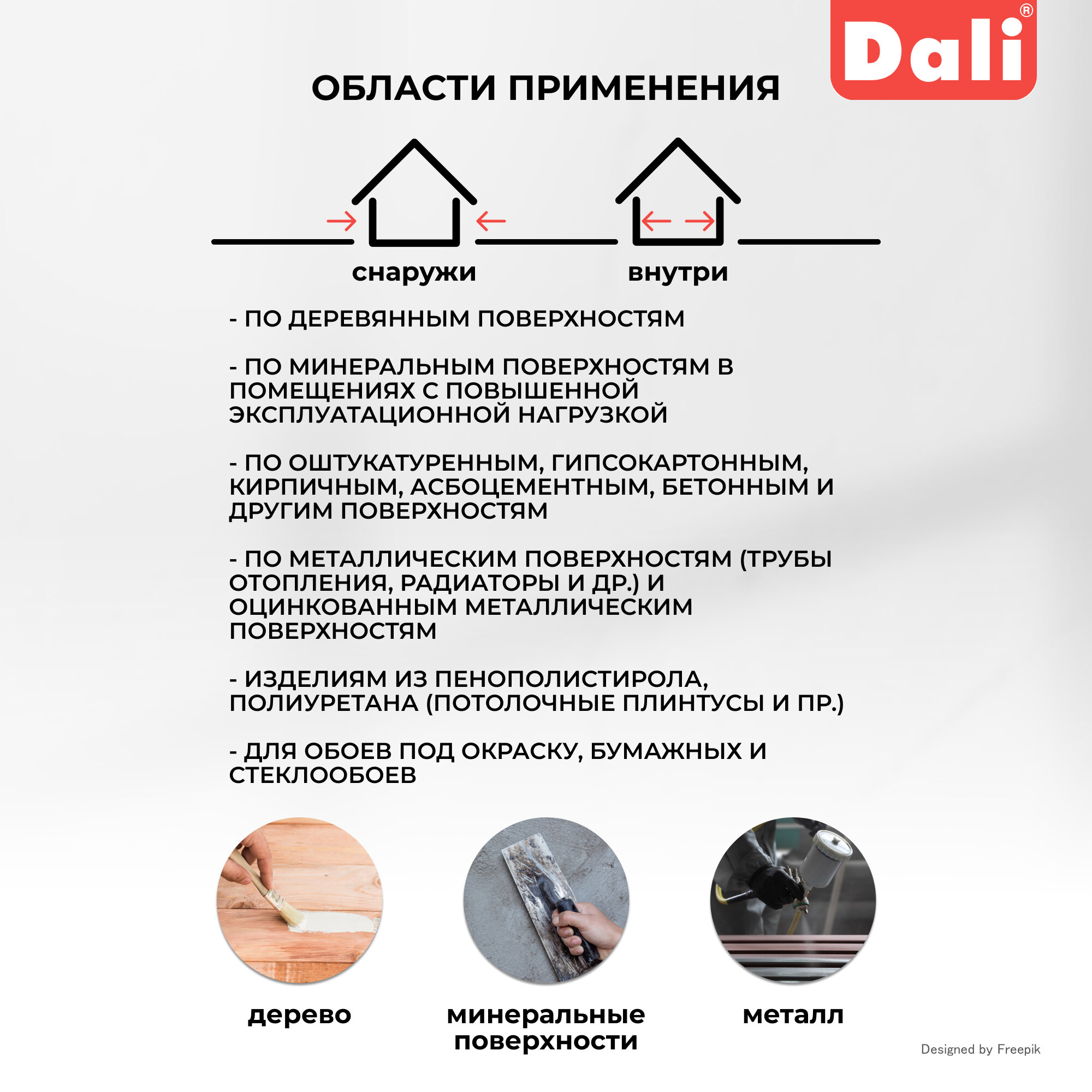 | Область применения | для балок / для ванн / для влажных помещений / для гаражей / для дверей / для крыши / для мебели / для наличников / для окон / для перегородок / для подоконников / для пола / для полок / для потолков / для радиаторов / для садовой мебели / для сантехники / для стен / для труб / для фасадов / эмаль |