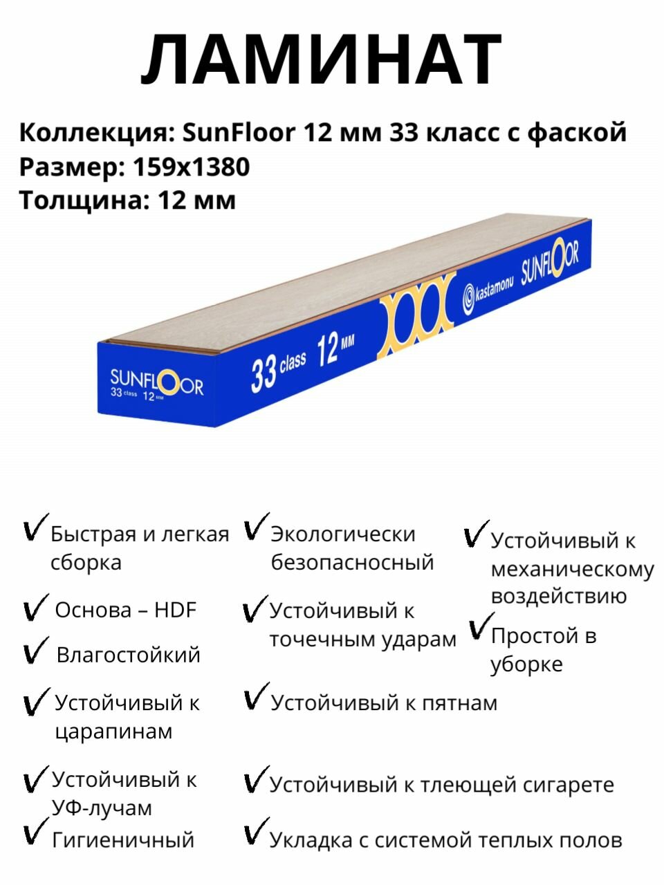 Ламинат Kastamonu SUNFLOOR "Дуб Вис", 12 мм (8штук/1.76 м2), упаковка, 33 класс информация:
