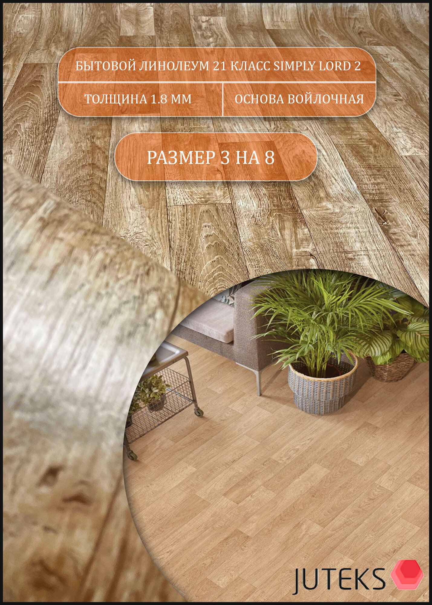 Линолеум 3 на 8 Лорд -2 (тонкий, бюджетный) на войлочной основе информация:
