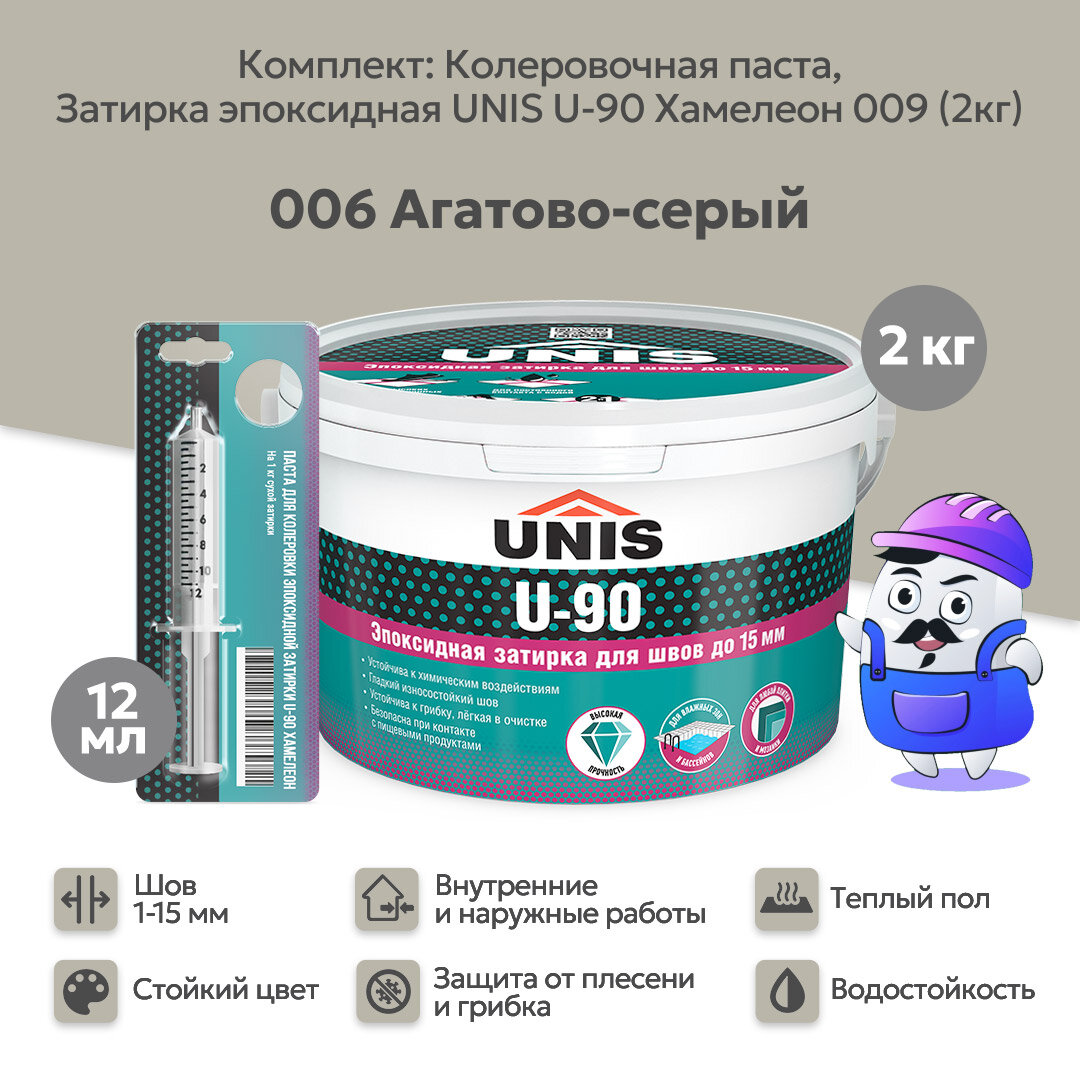 Набор Затирка эпоксидная UNIS U-90 Хамелеон 009 (2кг) + кол. паста UNIS U-90 006 агатово-серый информация: