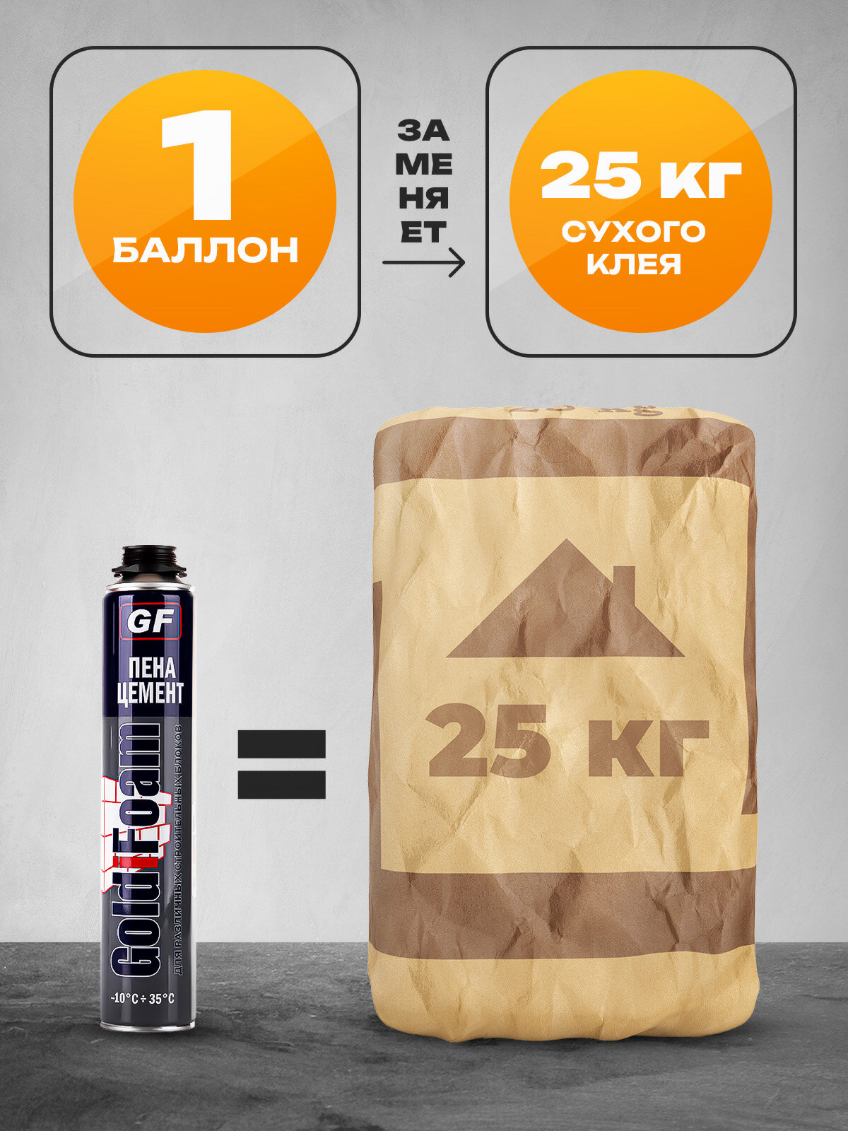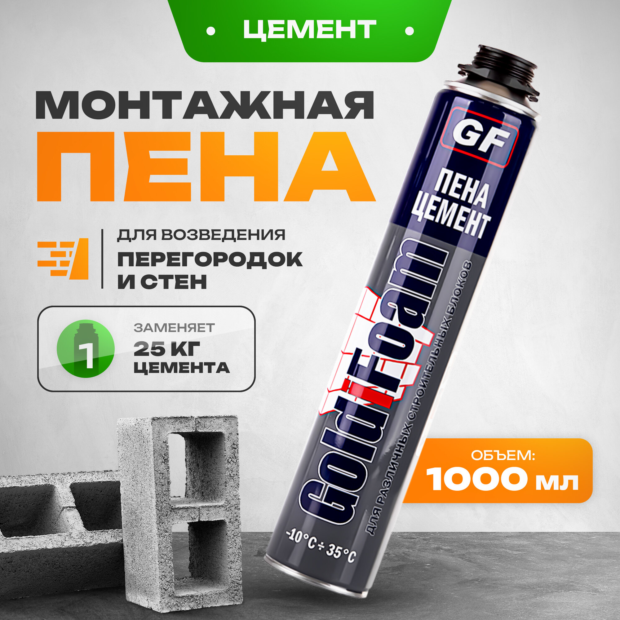 10 цен на Монтажная пена-цемент полиуретановая GoldiFoam всесезонная, профессиональная, 1000 мл, 1 шт.