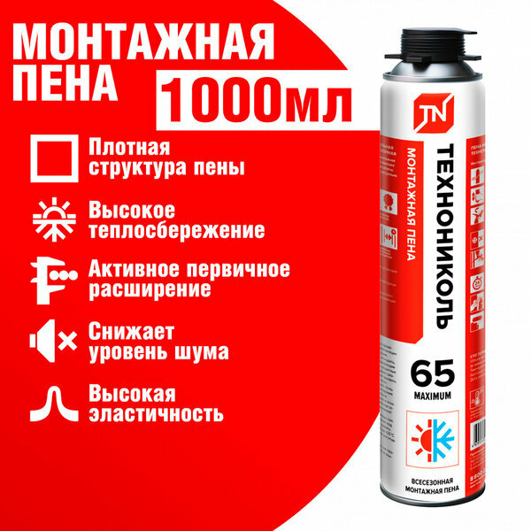 Пена монтажная профессиональная технониколь №65 MAXIMUM , всесезонная 990гр информация: