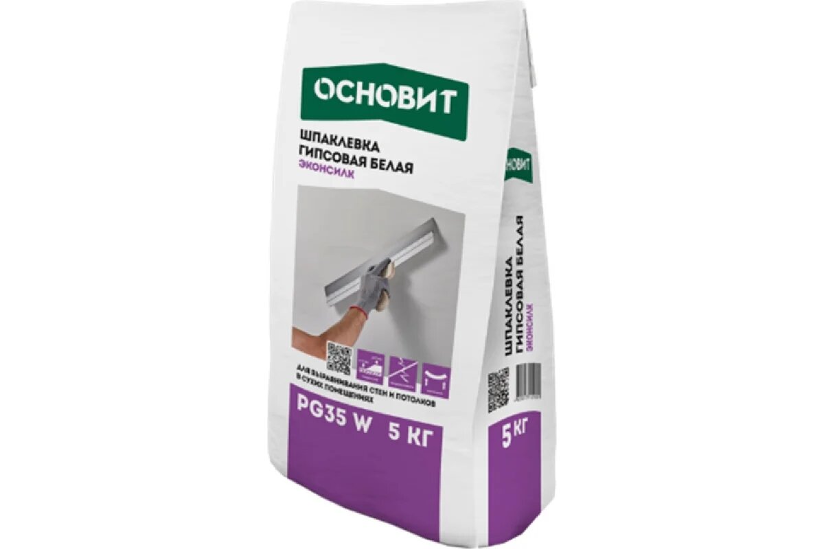 Гипсовая шпаклевка Основит эконсилк PG35 W белая, 5 кг 85488 информация: