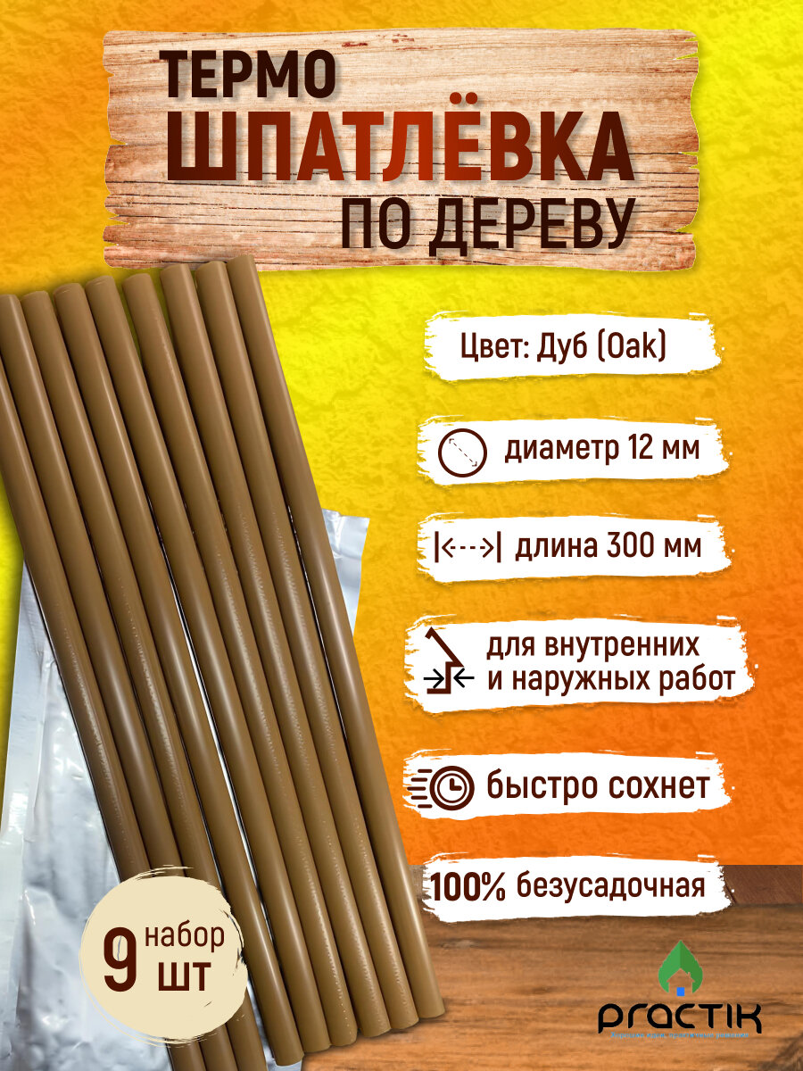 10 цен на Термо шпатлевка, стержень для клеевого пистолета (длинна 30см, диаметр 12мм) быстро сохнет, безусадочная Цвет Дуб (Oak) 9шт. (упаковка)