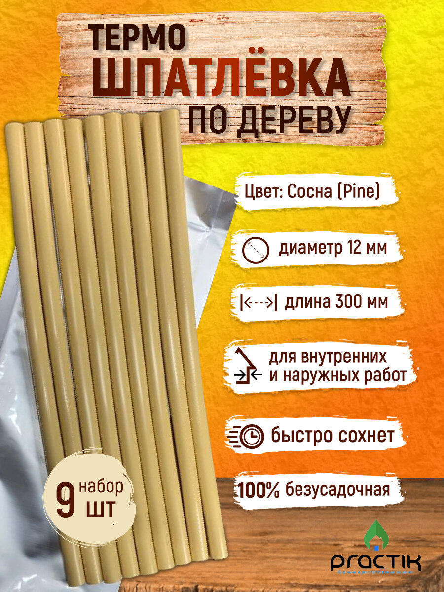 Термо шпатлевка, стержень для клеевого пистолета (длинна 30см, диаметр 12мм) быстро сохнет, безусадочная Цвет Сосна (Pine) 9 шт (упаковка) информация: