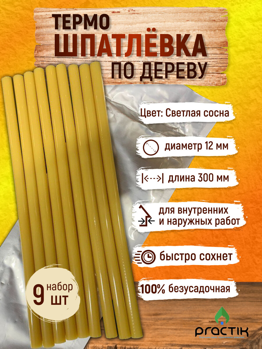 Термо шпатлевка, стержень для клеевого пистолета (длинна 30см, диаметр 12мм) быстро сохнет, безусадочная Цвет Светлая сосна (Pine light) 9 шт(упаковка) информация: