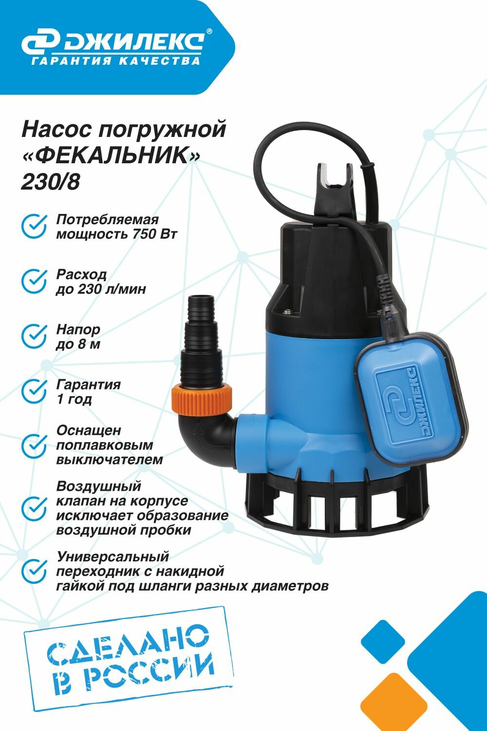 Отзывы на Насос фекальный погружной Джилекс фекальник 230/8 Н каб 7м. для септика H 8м, 230 л мин. Нержавеющая сталь, насос для грязной воды