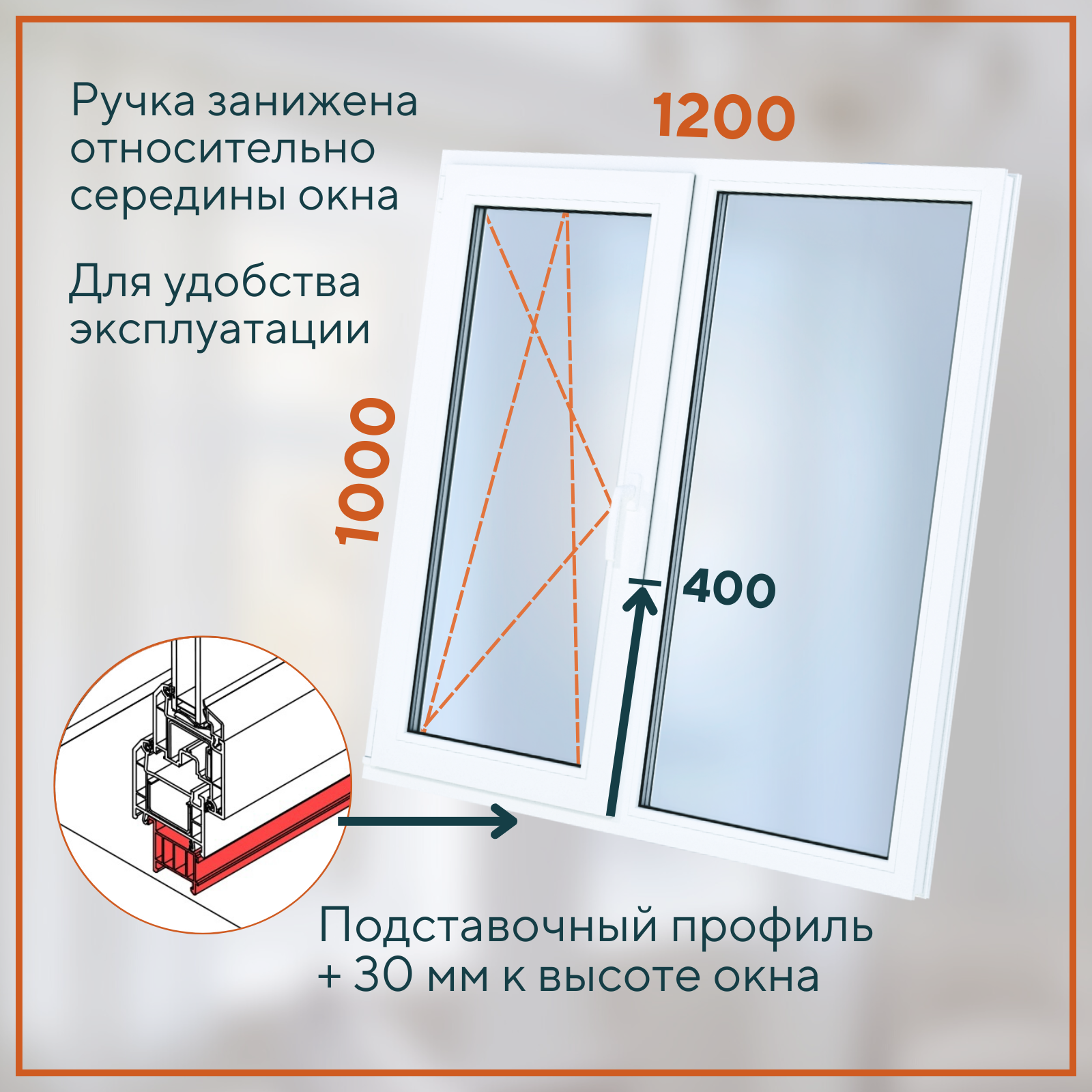 Пластиковое окно 1200х1000 мм (ВхШ) ПВХ РЕХАУ BLITZ, две створки, две камеры в стеклопакете, три камеры в профиле 13 715 ₽