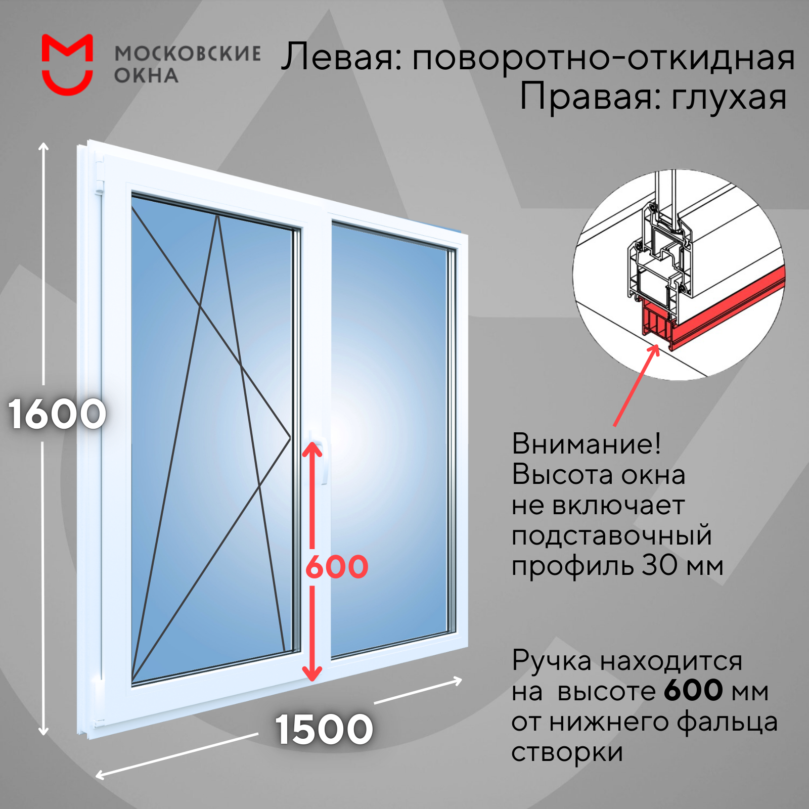 Пластиковое окно 1600х1500 мм (ВхШ) РЕХАУ BLITZ, поворотно-откидное, белое информация: