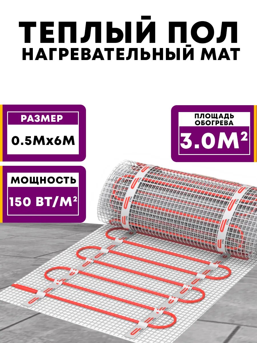 Тёплый пол электрический под плитку без терморегулятора 3.0м2 информация: