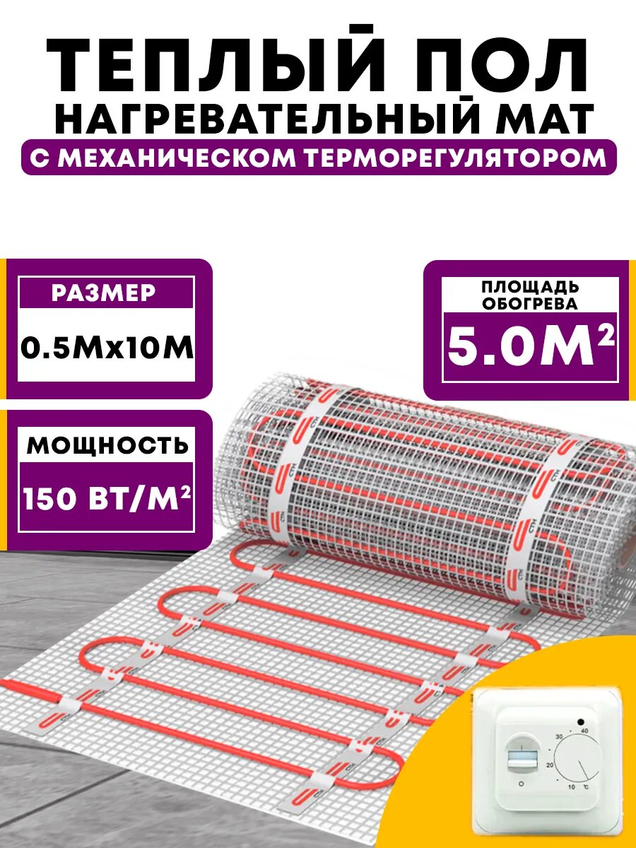 10 цен на Тёплый пол с терморегулятором электрический под плитку 5.0м2