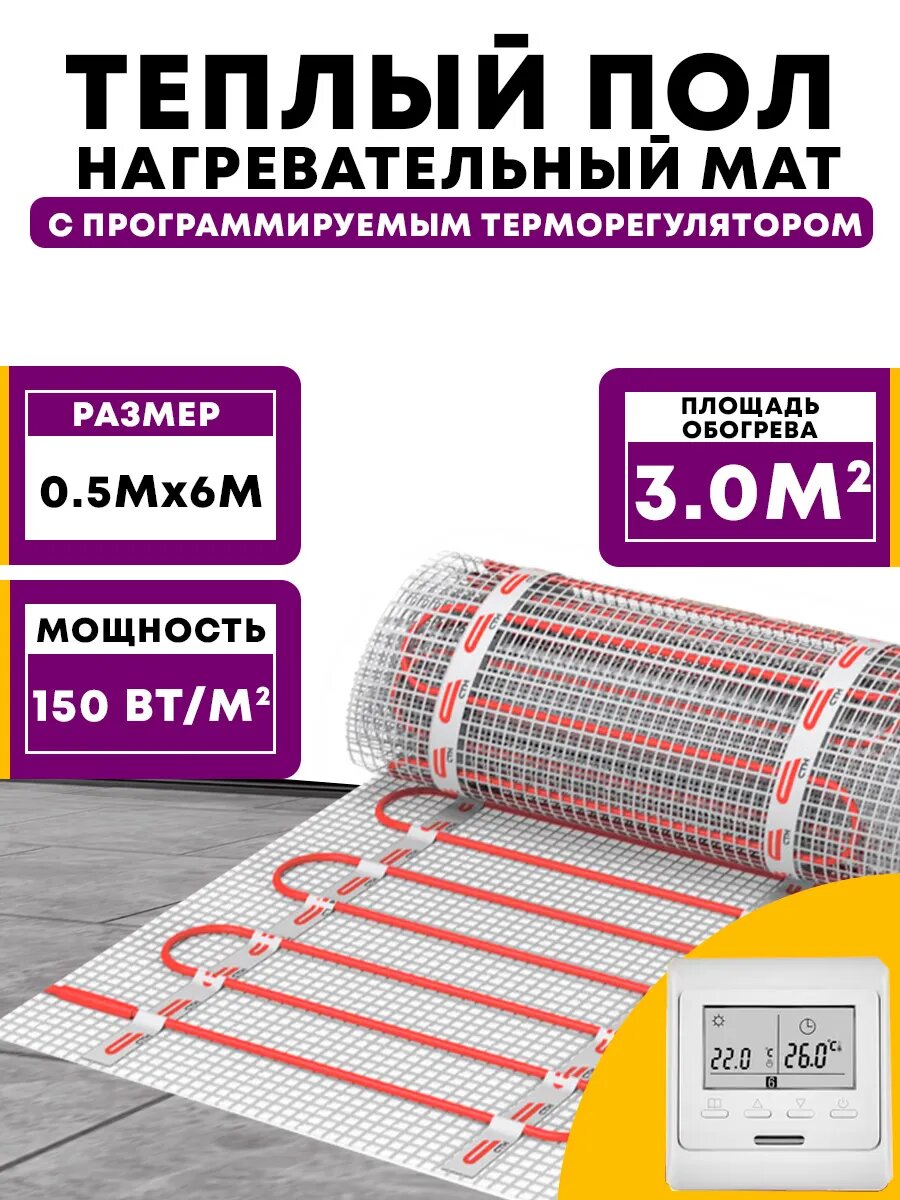 10 цен на Тёплый пол электрический под плитку с терморегулятором 3.0м2