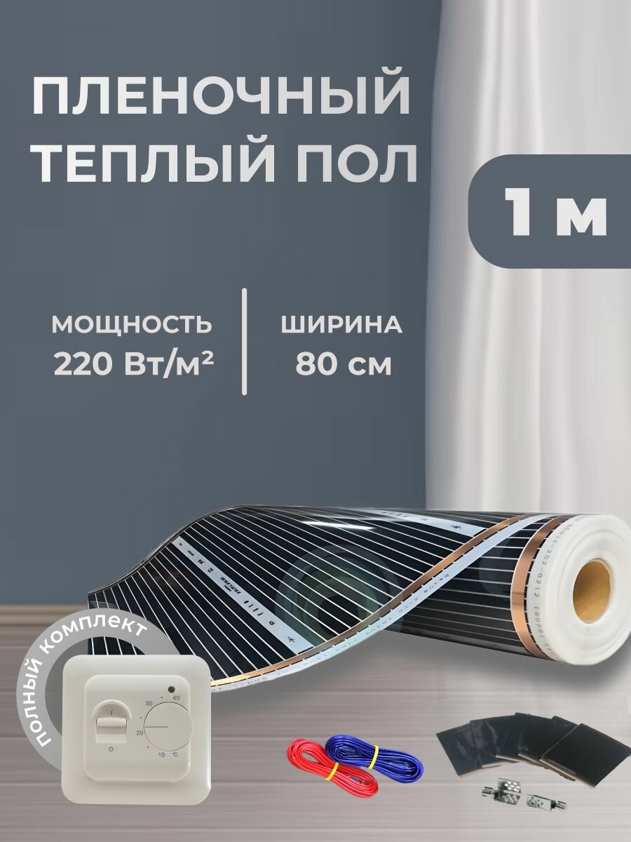 Пленочный теплый пол 1 м.п. комплект ширина 80см с электронным терморегулятором 3 480 ₽