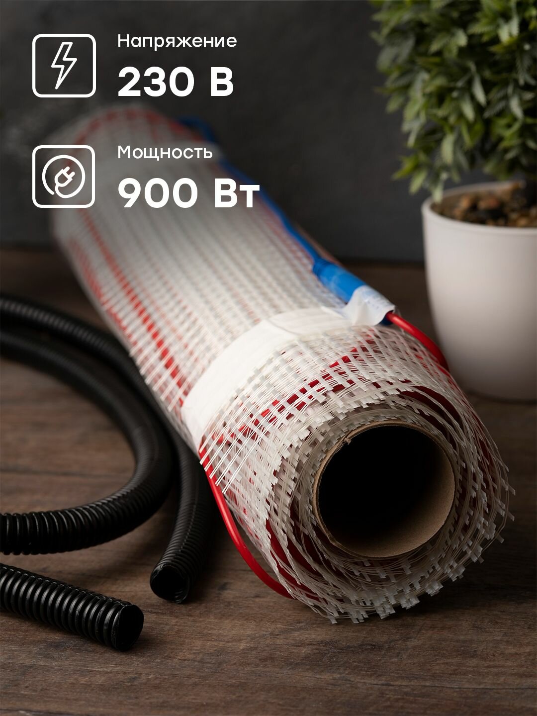 Тёплый пол электрический под плитку (мат нагревательный), 6 кв. м, 900 Вт. информация: