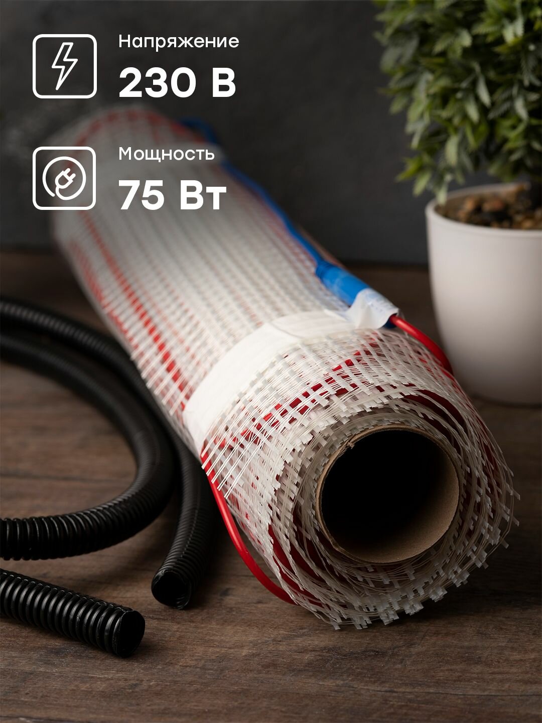 Тёплый пол электрический под плитку (мат нагревательный), 0,5 кв. м, 75 Вт. информация: