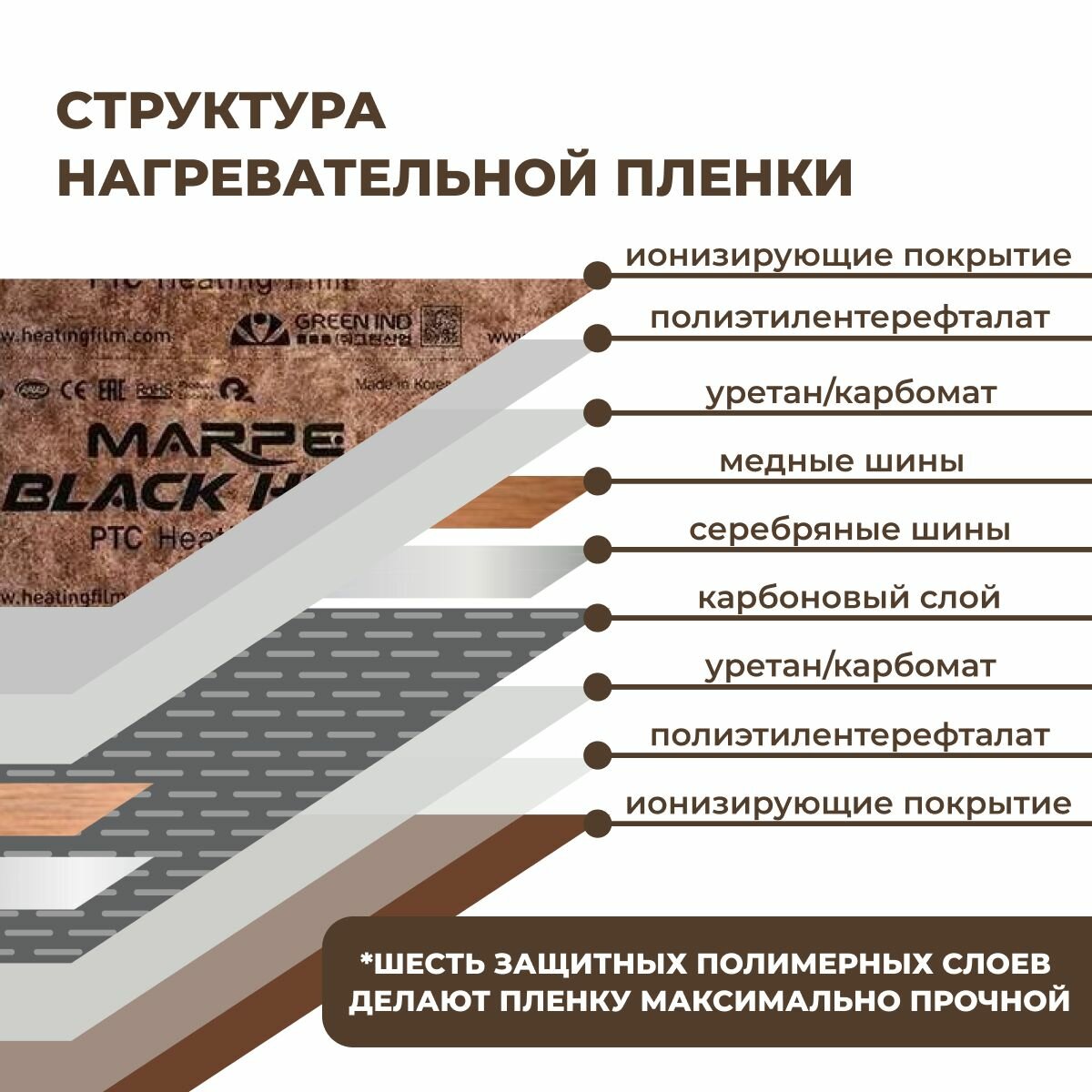 Саморегулирующийся инфракрасный теплый пол 3 м.кв. MARPE Black Heat 50 см ширина, комплект элит с терморегулятором 10 100 ₽