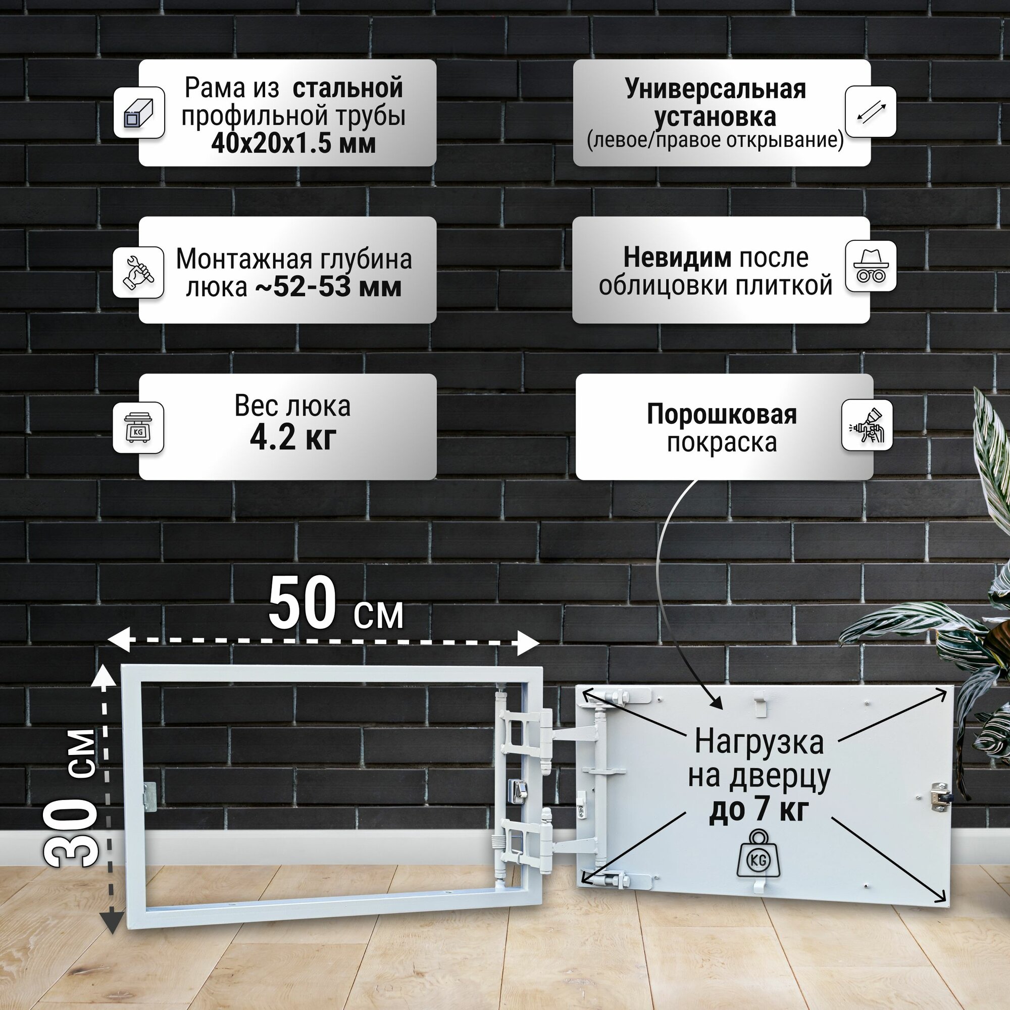Отзывы на Люк ревизионный под плитку Пилот 50*30 см, стальной, сантехнический, нажимной, металлический, настенный, люк невидимка, дверца ревизионная скрытого монтажа
