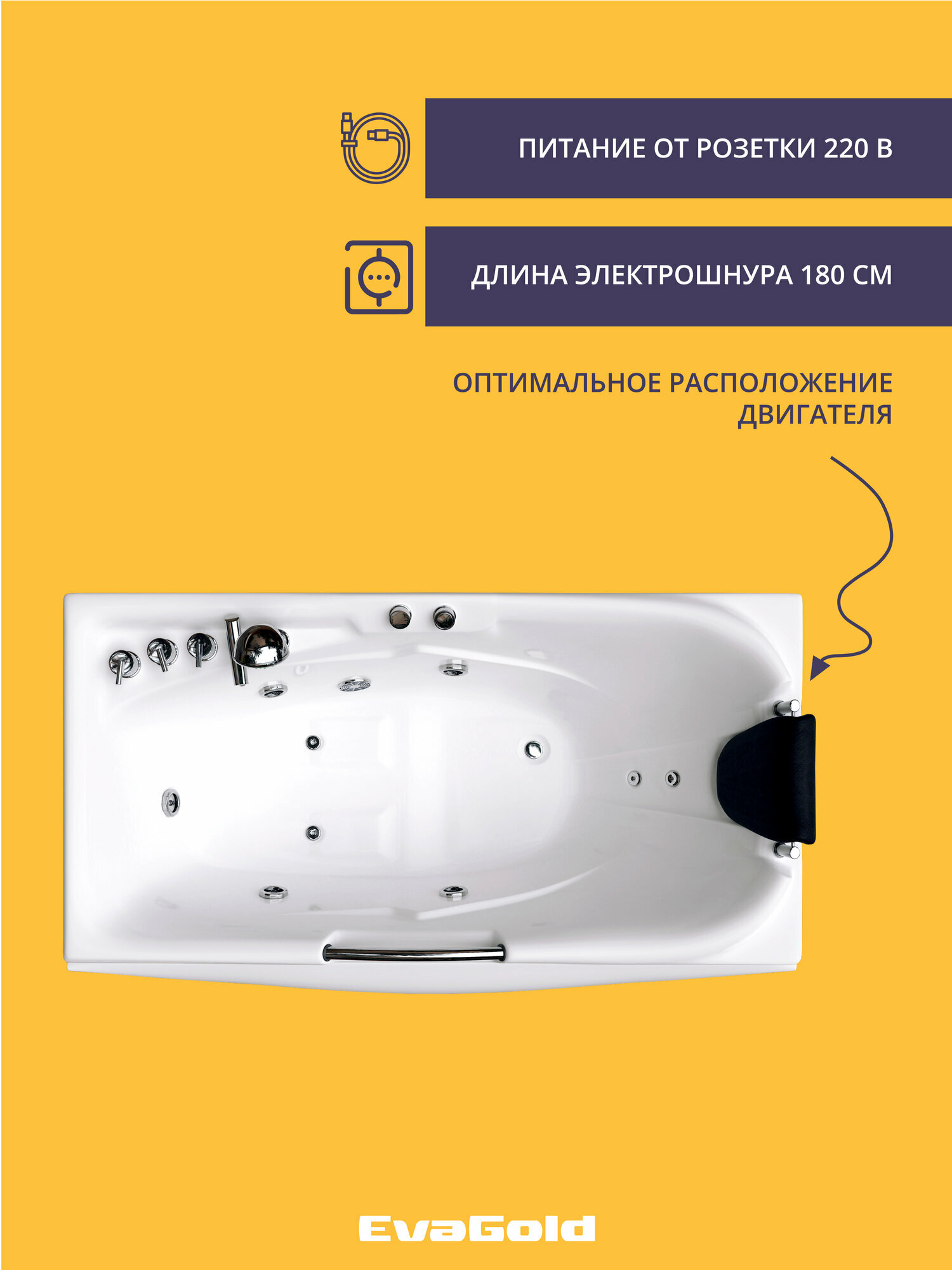 Гидромассажная ванна EvaGold 171х88х54, модель ND501.4 белый для ванной информация: