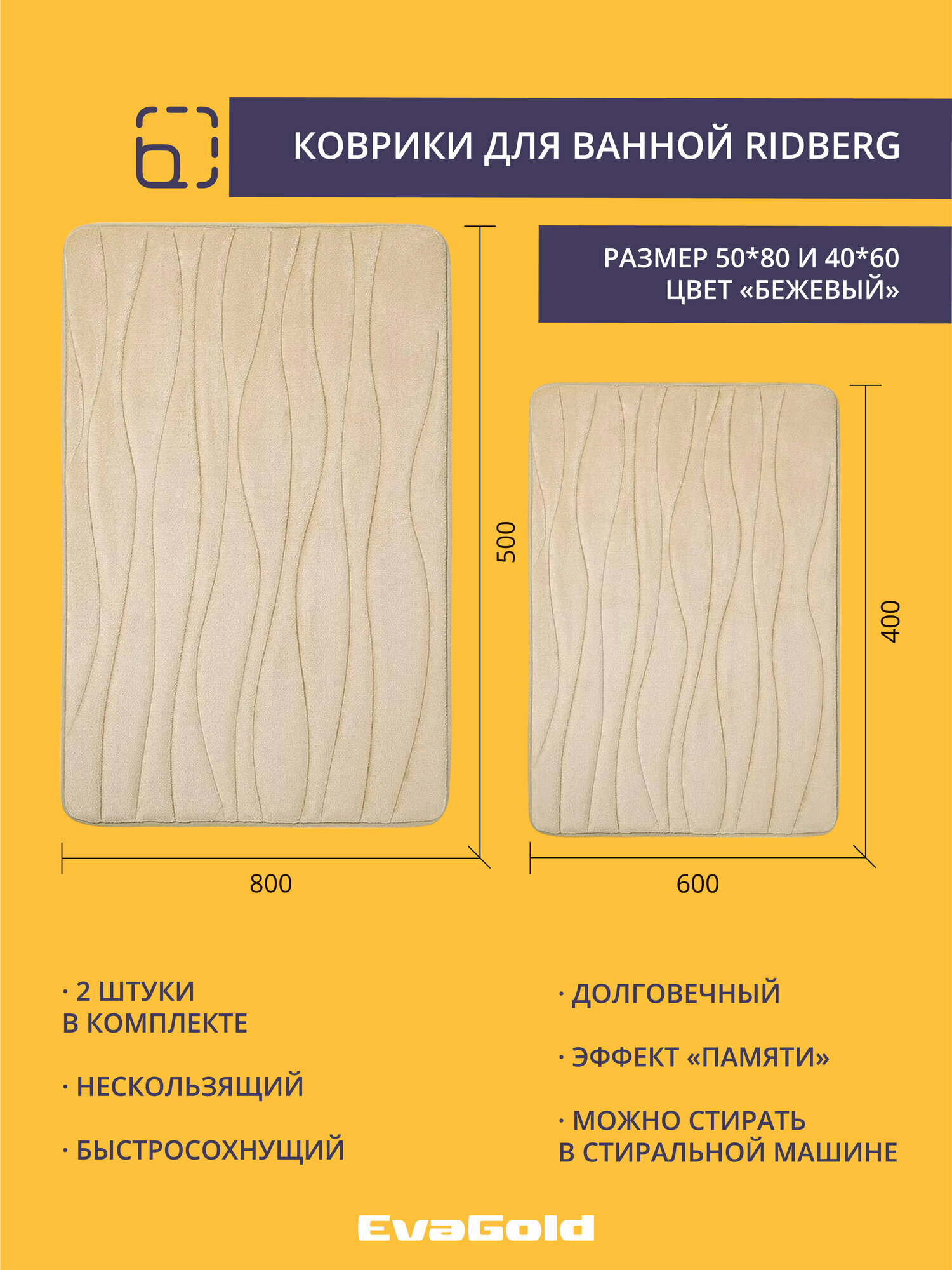 10 цен на Гидромассажная ванна EvaGold 171х88х54, набор ND501.5 белый для ванной с двумя ковриками, бежевый