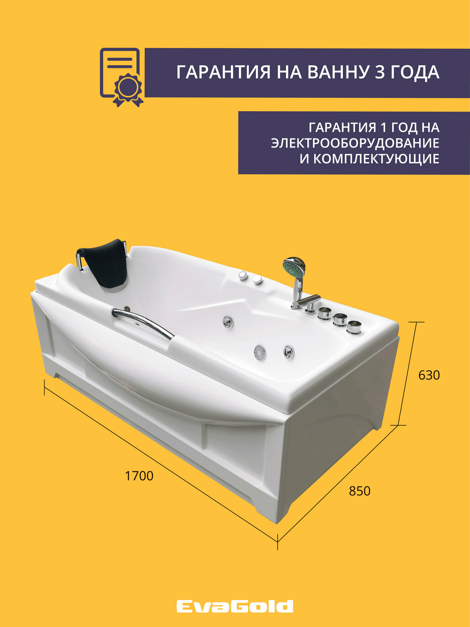 Гидромассажная ванна EvaGold 171х88х54, модель ND501.4 белый для ванной 97 788 ₽