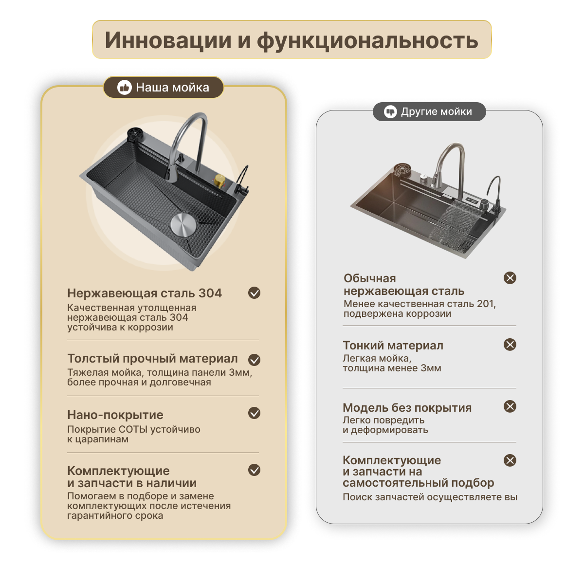 Отзывы на Многофункциональная мойка DHome для кухни из нержавеющей стали цвет графит