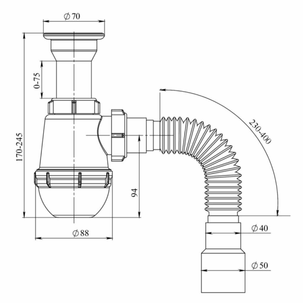 | Дополнительная информация | Литой выпуск 1 ½ (40), винт 6х40, чашка из нержавеющей стали, гибкий отвод в канализацию 40х40/50 |