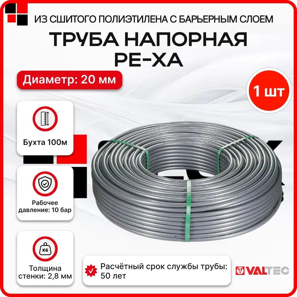 Труба теплого пола 20мм 2,8мм толщина EVOH, тип PE-Xa бухта 100м VALTEC информация: