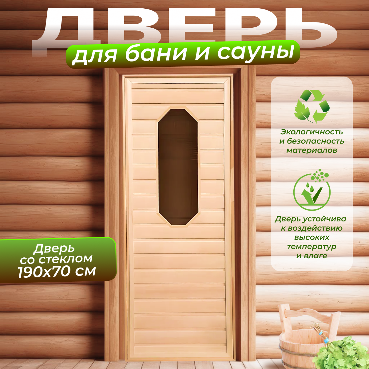 Дверь для бани и сауны, размер коробки 170х80 см, универсальная, липа