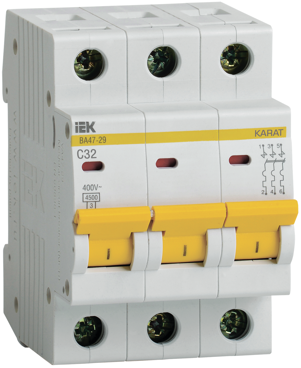 Автоматический выключатель IEK KARAT ВА 47-29, 3P, C, IP20, монтаж на DIN-рейке информация: