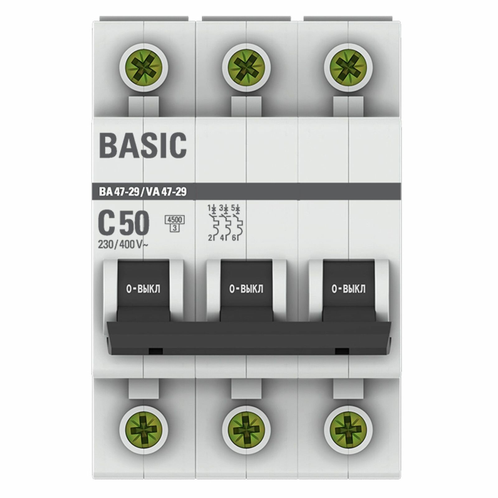 Автоматический выключатель 3P 50А (C) 4,5кА ВА 47-29, EKF Basic информация: