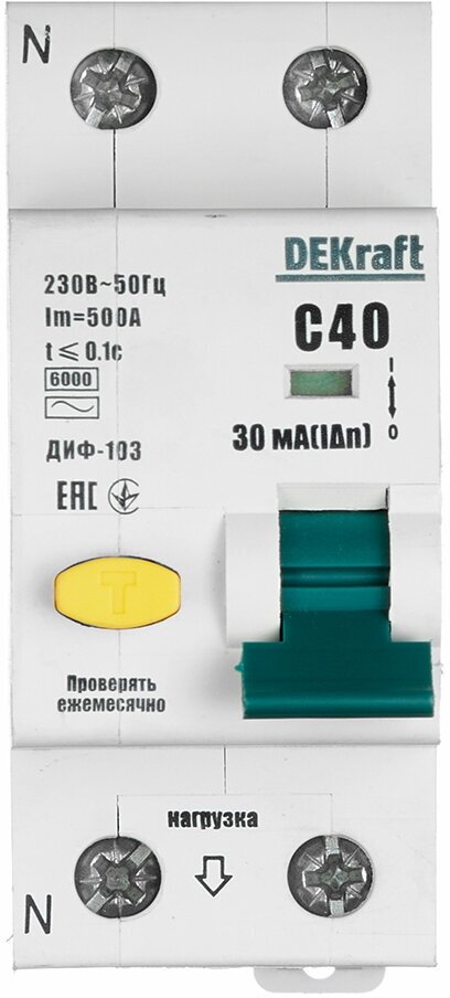 DEKraft АВДТ 1Р+N 40А 30мА тип AC х-ка С ДИФ-103 6кА информация: