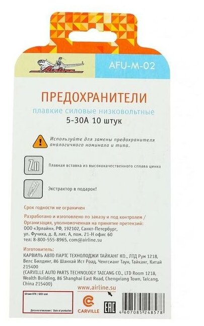 Предохранители "мини" 5-30а, 10шт, Airline, AFU-M-02 информация: