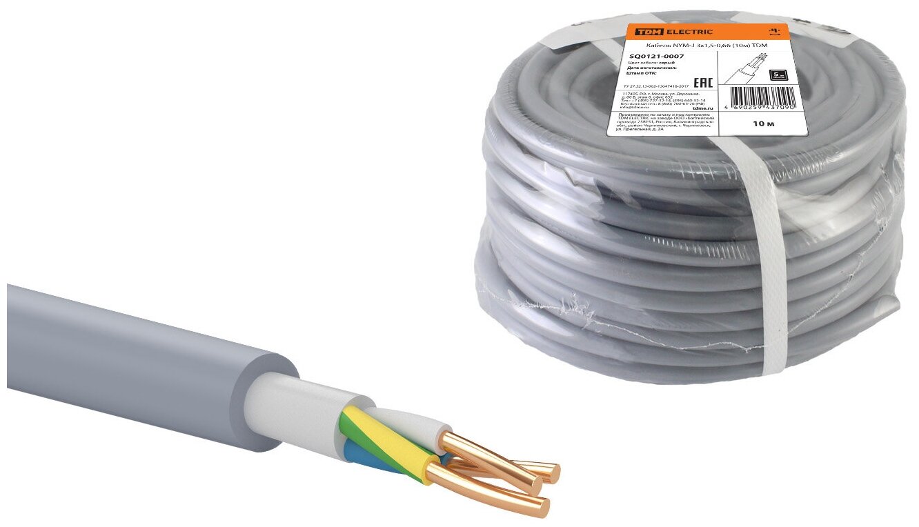 Кабель NYM-J 3х1,5-0,66 (10м) TDM информация: